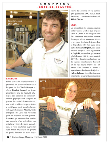 Article de Québec Scope sur le Gym Ultra en août 2008: