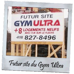 Sainte-Anne-de-Beaupré, 13 novembre 2009  -  Après des mois d'analyses et de préparatifs, le projet de la toute nouvelle bâtisse pour le Gym Ultra a finalement débuté aujourd'hui le 13 novembre 2009.  Le Nouveau Gym Ultra, avec vue sur le Fleuve St-Laurent et l'Île d'Orléans, devrait ouvrir ses portes en avril 2010.